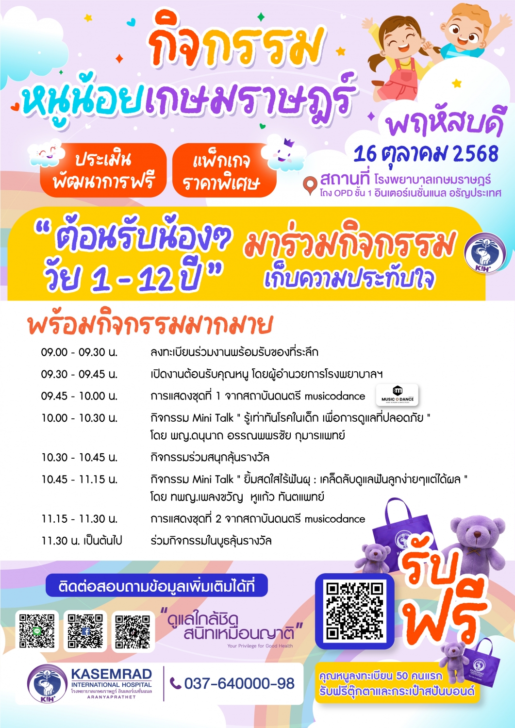 ขอเชิญน้องๆ หนูๆ วัย 1-12 ปี เข้าร่วม"กิจกรรมนูน้อยเกษมราษฎร์"