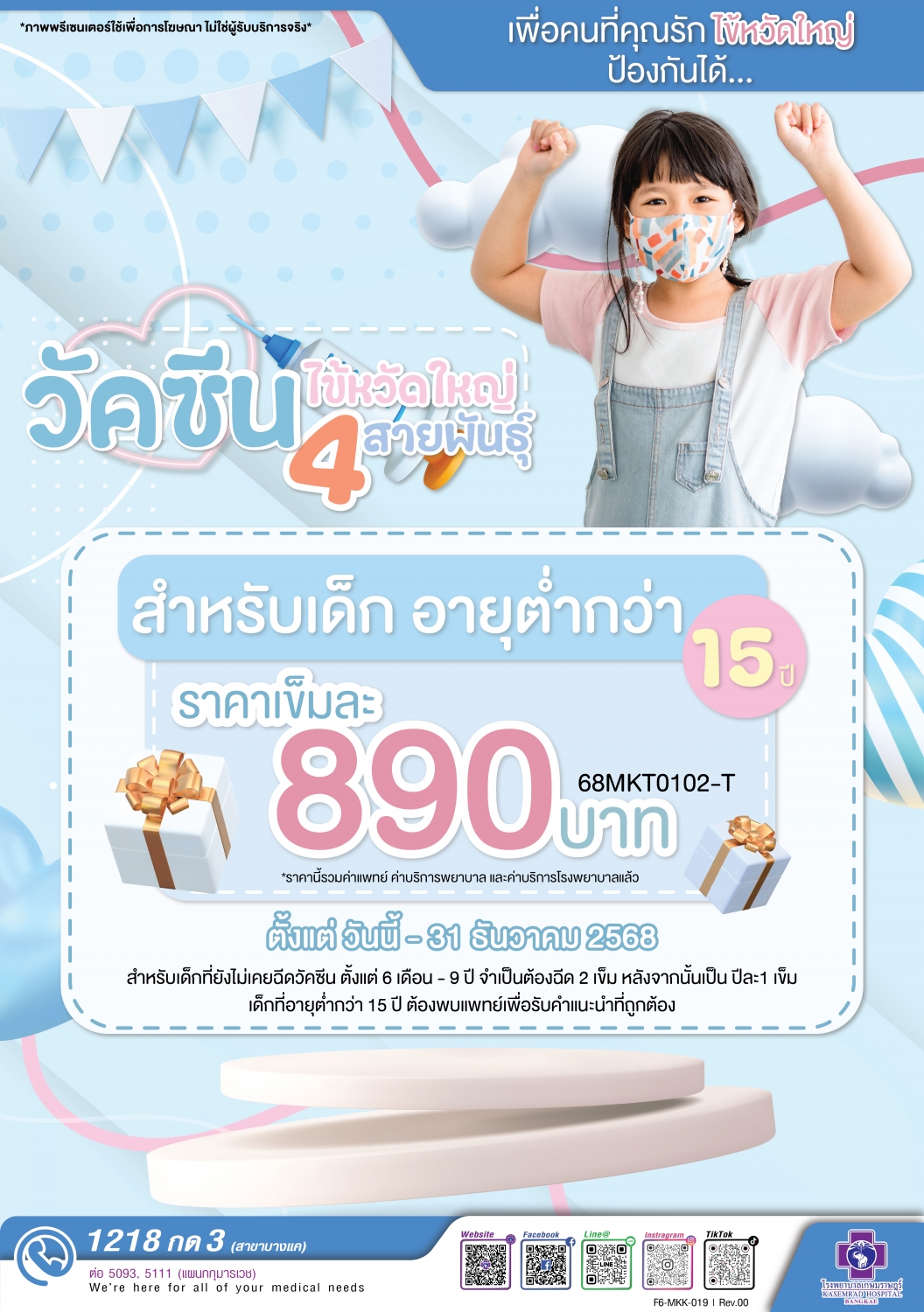 วัคซีนไข้หวัดใหญ่ 4 สายพันธุ์(สำหรับเด็ก อายุต่ำกว่า 15 ปี)