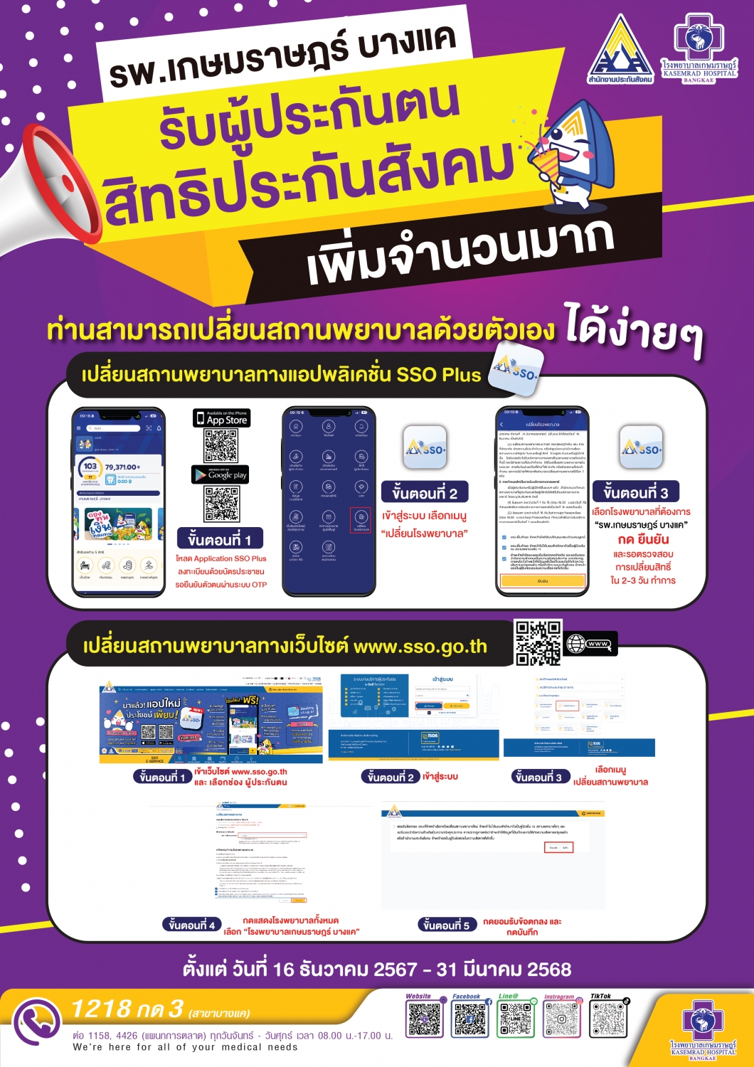 เปลี่ยนสิทธิประกันสังคมเลือกโรงพยาบาลเกษมราษฎร์ บางแค เป็นสถานพยาบาลหลัก