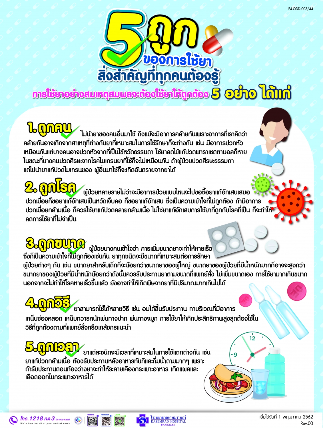 การใช้ยาอย่างสมเหตุสมผลจะต้องใช้ยาให้ถูกต้อง 5 อย่าง ได้แก่