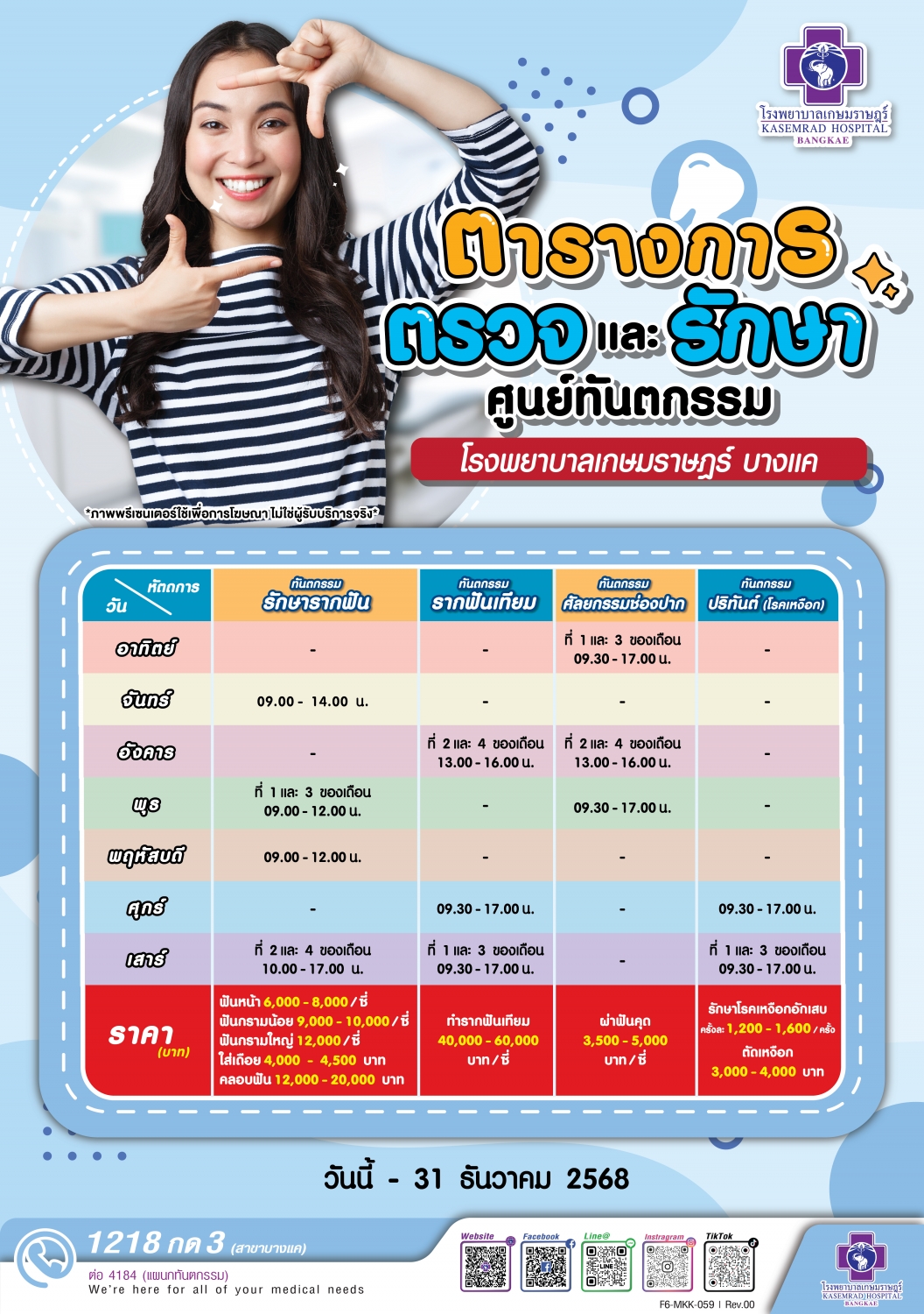 ตารางตรวจและการรักษาศูนย์ทันตกรรม