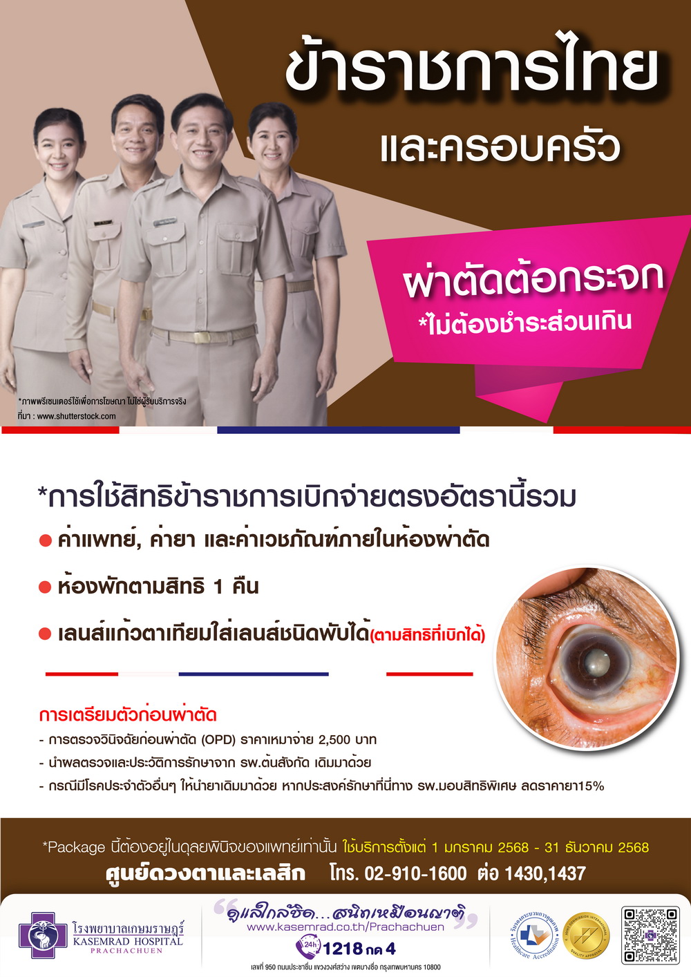 ข้าราชการไทยและครอบครัว ผ่าตัด ต้อกระจก ไม่ต้องชำระส่วนเกิน